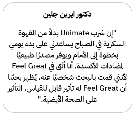 - ابدأ يومك مع Unimate. Unimate يساعدك على دعمك طوال اليوم دون أن تفطر.